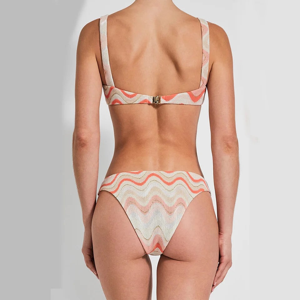 El bikini Emily es exquisito. Nos encanta su estampado sencillo y femenino. Su top en tendencia con varilla tipo aro te hará lucir un escote definido y con muy buen soporte al busto. Su bottom con corte a la cadera y escote cheeky te hará lucir sexy y muy cómoda.