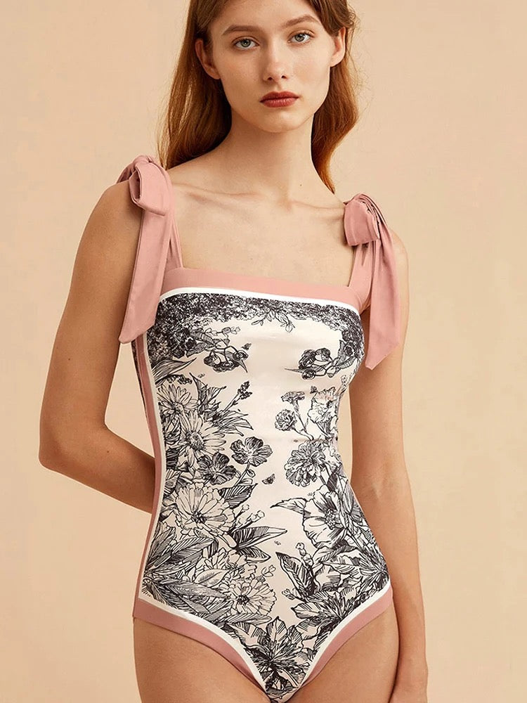 El traje de baño Lily te ofrece dos estampados únicos, uno más neutro y otro lleno de color. Sus tirantes gruesos formarán dos moños que dan un toque especial y muy femenino.
