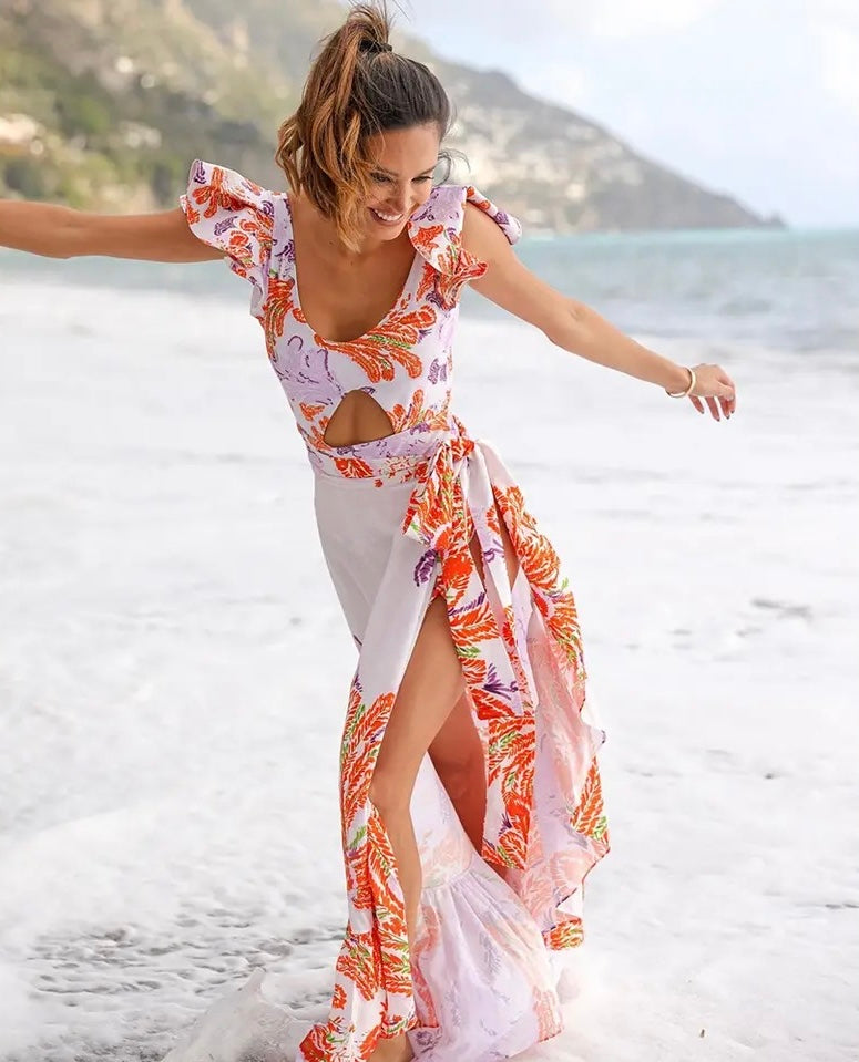 Siéntete increíble con nuestro entero MARISSA, este set en traje de baño entero con hermoso estampado te fascinara, es un modelito con detalles de olan a los hombros, escote redondo y sutil abertura en el abdomen, luce un precioso escote medio profundo en la espalda, el corte de pierna es clásico para mayor comodidad y luce la bonita falda que viene en combinación.